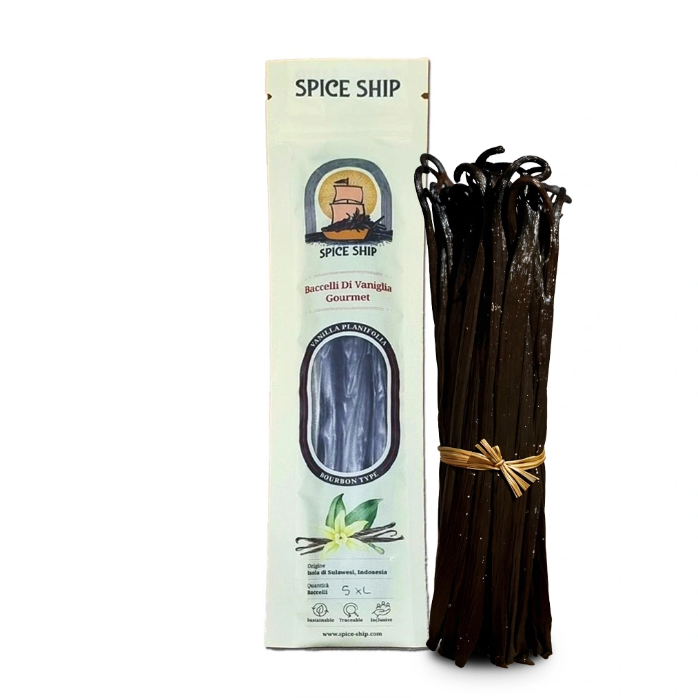 Spice Ship - 5 Baccelli di Vaniglia Gourmet - Vanilla Planifolia - Bourbon type - Baccelli di Vaniglia Gourmet XL 15-18 cm